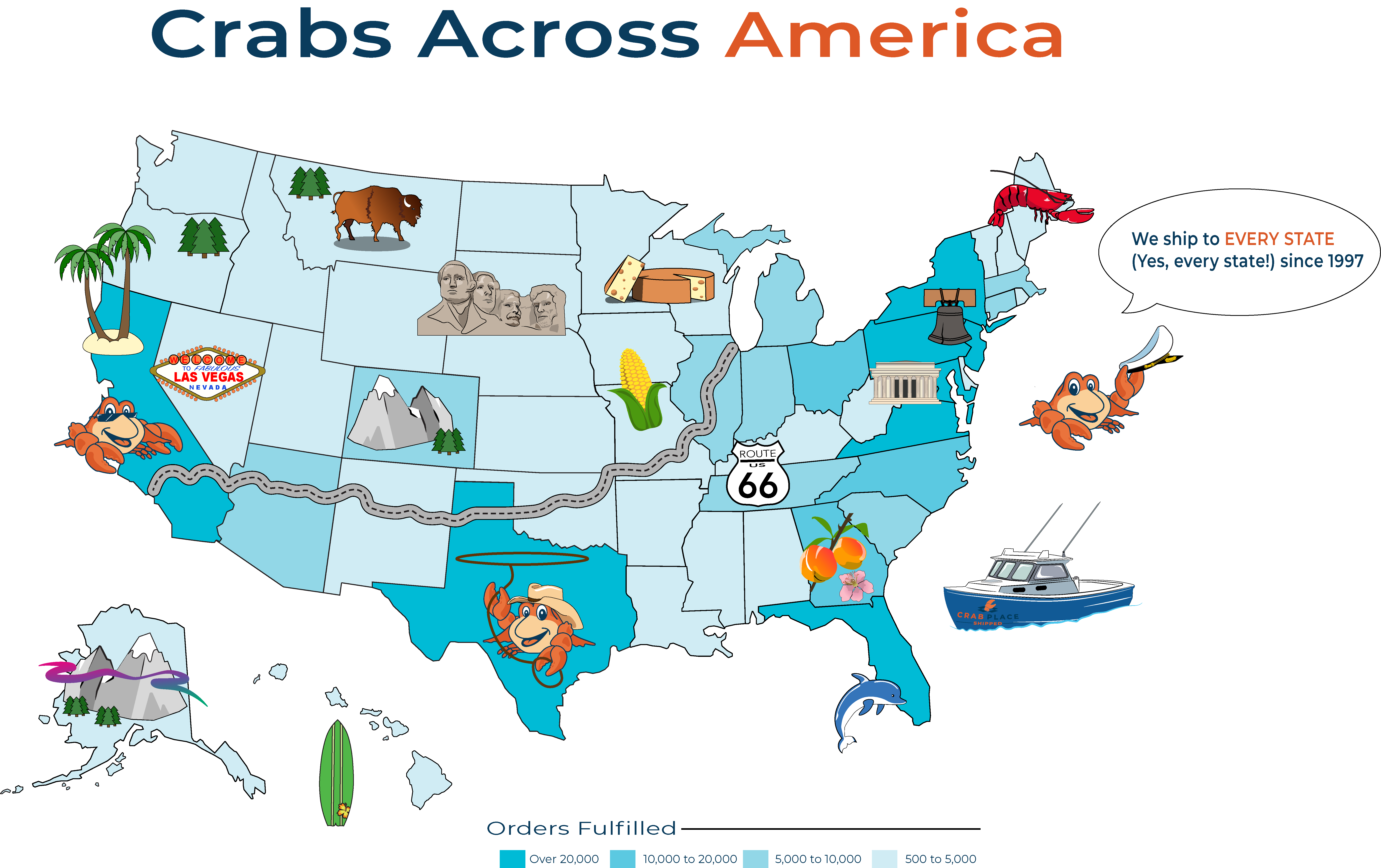 Crabs Across America highlights the joy of sharing Maryland crabs with loved ones across the country, emphasizing the communal experience of enjoying a crab feast. It celebrates how the tradition of crabbing unites families, friends, and even distant strangers, making it more than just a meal but a cherished bonding experience. Shipping crabs to different states shows how this classic Maryland dish can bring people together, fostering connection and shared memories despite physical distance. It showcases the unique role of crabs in creating meaningful, delicious moments for all.