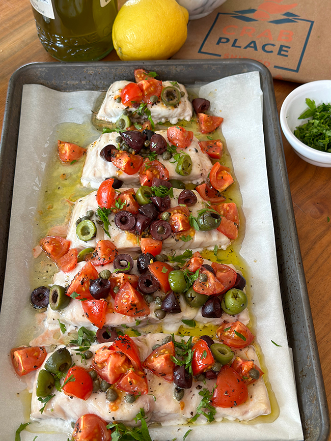 This Mediterranean-inspired baked fish is a simple yet flavorful dish that highlights fresh ingredients and bold flavors. With briny olives, juicy tomatoes, and bright lemon, the topping infuses the fish with a delicious balance of saltiness and freshness. Best of all, it comes together quickly, making it perfect for a weeknight dinner or an elegant meal. Follow the golden rule—12 minutes per inch of thickness—and you’ll have perfectly cooked, flaky fish every time. Drizzle with high-quality olive oil before serving for a final touch of richness. This recipe takes 10 minutes of prep and 12 minutes of cooking.