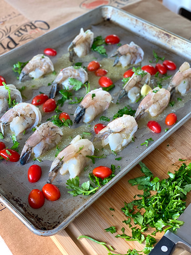 What I love about this dish is the satisfying taste. It is also great for family meals or when friends are over since it’s super easy to prepare--because the shrimp is baked you don't have to manage it too much. Feel free to add in some spice to kick it up. A few shakes of red pepper flakes should do it. This recipe takes 20 minutes of prep and 15 minutes of cooking.