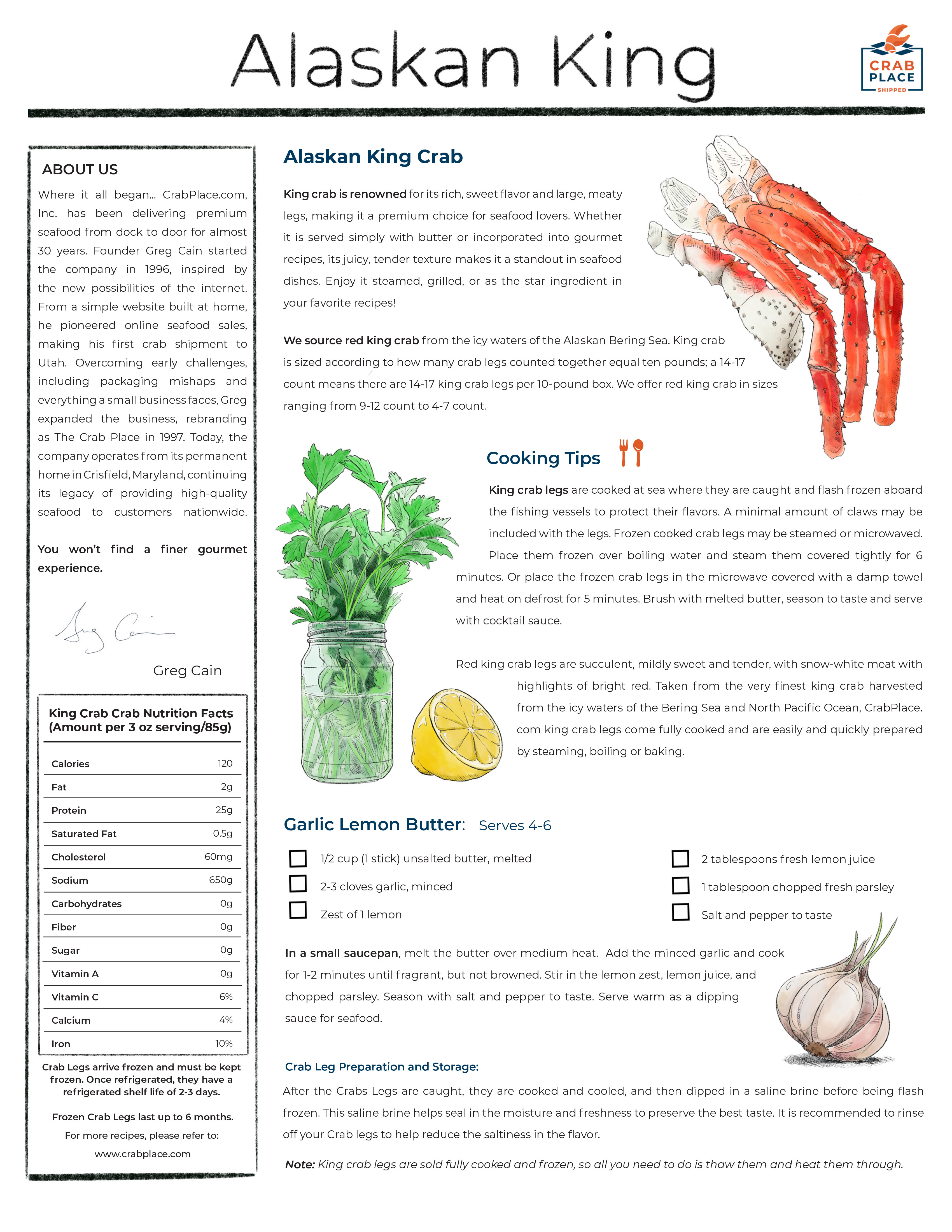 King crab is renowned for its rich, sweet flavor and large, meaty legs, making it a premium choice for seafood lovers. Whether it is served simply with butter or incorporated into gourmet recipes, its juicy, tender texture makes it a standout in seafood dishes. Enjoy it steamed, grilled, or as the star ingredient in your favorite recipes!