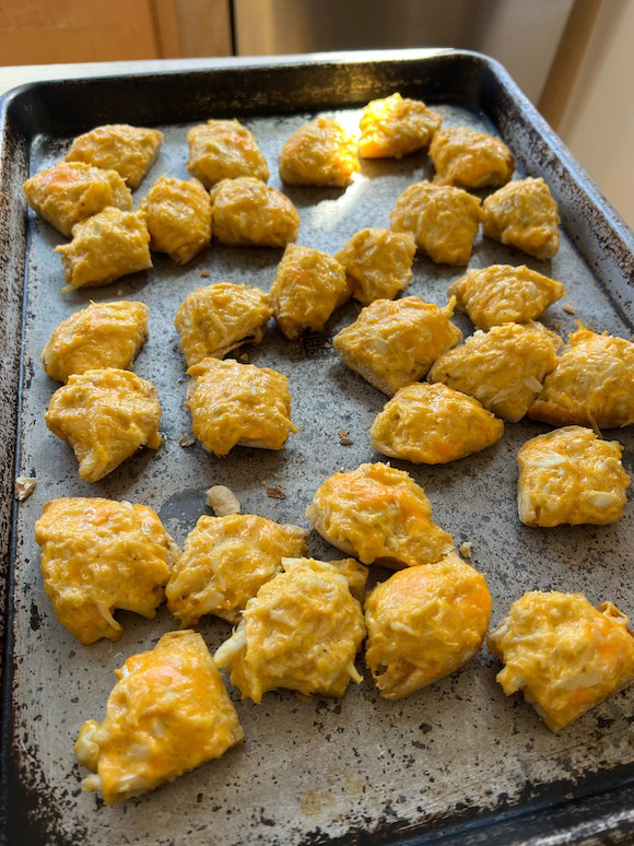 Crab Meltaways are a delicious and easy appetizer for a festive gathering, a cocktail party, or a romantic dinner. To avoid the last-minute rush, you can prepare them days ahead of time. In fact, they store well in the freezer for up to six months, so you can use a few or a quantity as needed depending on the event. They pair well with seafood for your main dish -- for example, rockfish, shrimp, or lobster. Or you can have them as appetizers before serving steak. Regardless, you can’t go wrong with Crab Meltaways because your guests are guaranteed to rave about them as the highlight of the meal or party. This recipe takes 10 minutes of prep and 5 minutes of cooking.