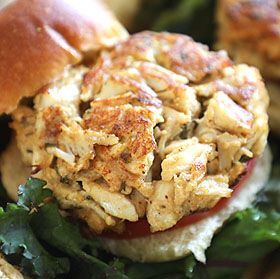 When the crab cakes are finished baking, place each cake on a slice of bread or English muffin. Put a tomato slice on the crab cake along with a large dollop of herb mustard. Top with bread or muffin and serve immediately.