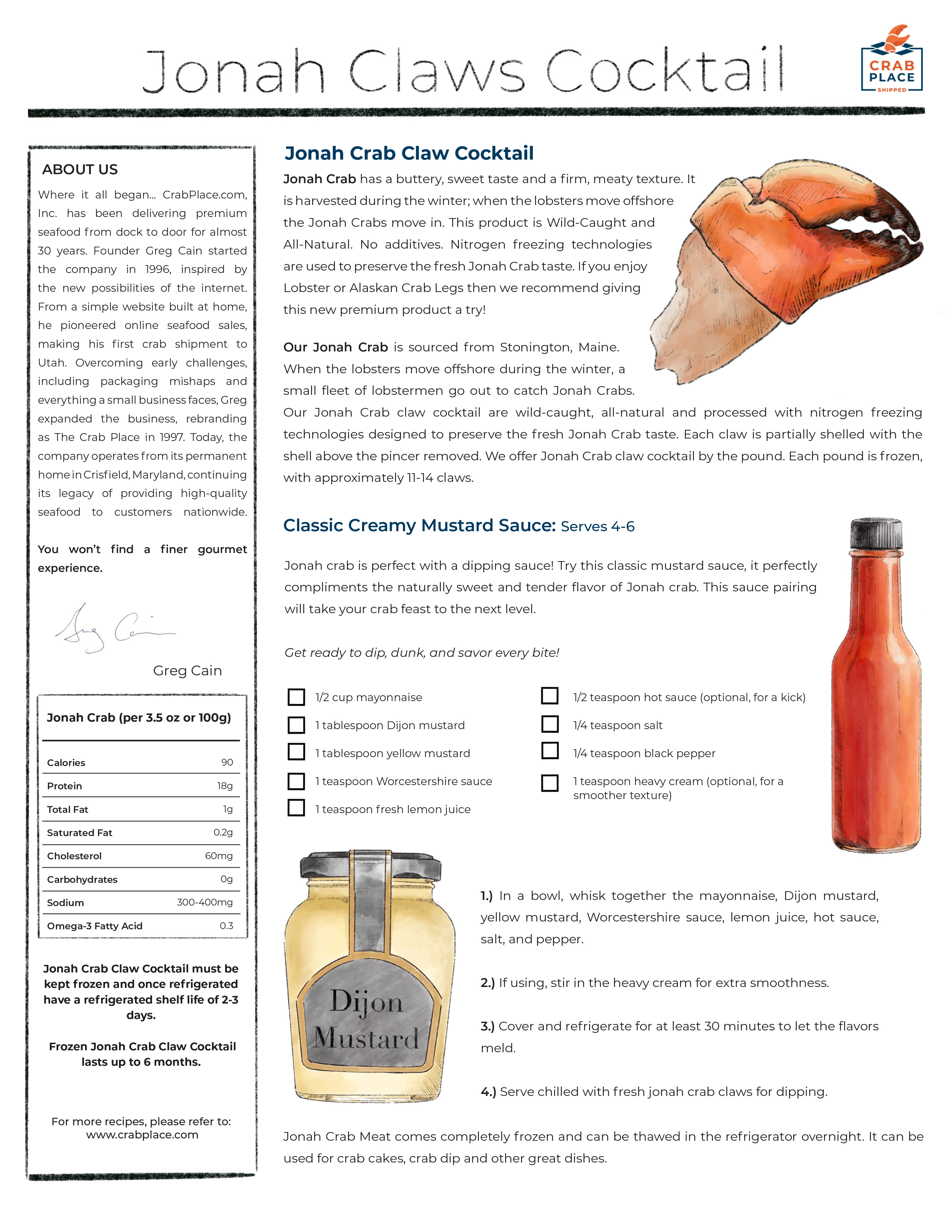 Sourced from Stonington, Maine, Jonah Crab has a buttery, sweet taste and a firm, meaty texture. It is harvested during the winter; when the lobsters move offshore the Jonah Crabs move in. This product is Wild-Caught and All-Natural. No additives. Nitrogen freezing technologies are used to preserve the fresh Jonah Crab taste. If you enjoy Lobster or Alaskan Crab Legs then we recommend giving this new premium product a try!