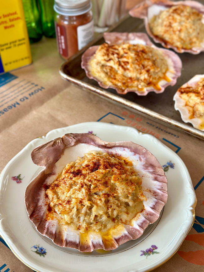 Traditional Maryland Crab Imperial in a Scallop Shell